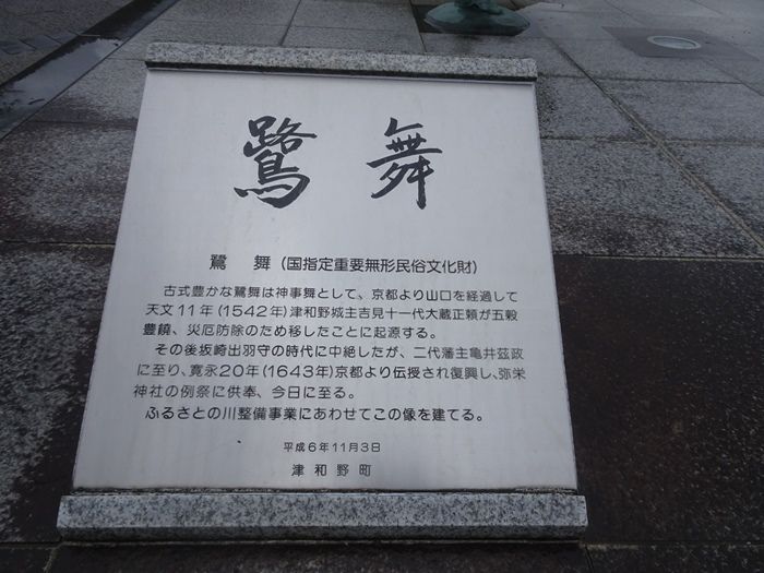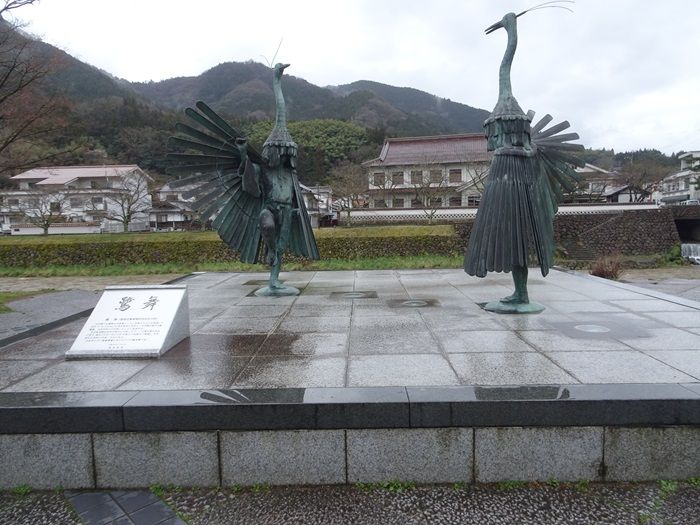 「鷺舞(さぎまい)の像」が津和野大橋の近くに。