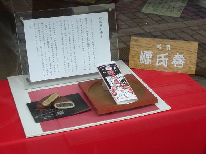 ショッピングウィンドウには、津和野名物の「源氏巻」が。