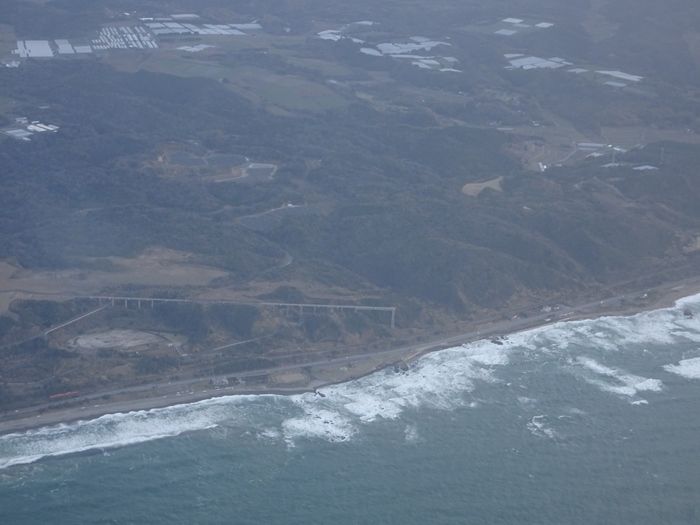 離陸後旋回すると右手下には石見空港の進入路指示灯が見えた。