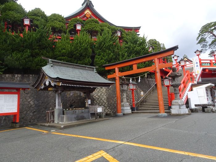 日本五大稲荷の一つに数えられ、出雲大社に次いで県内 2 位の年間参拝客を数えるとのこと。