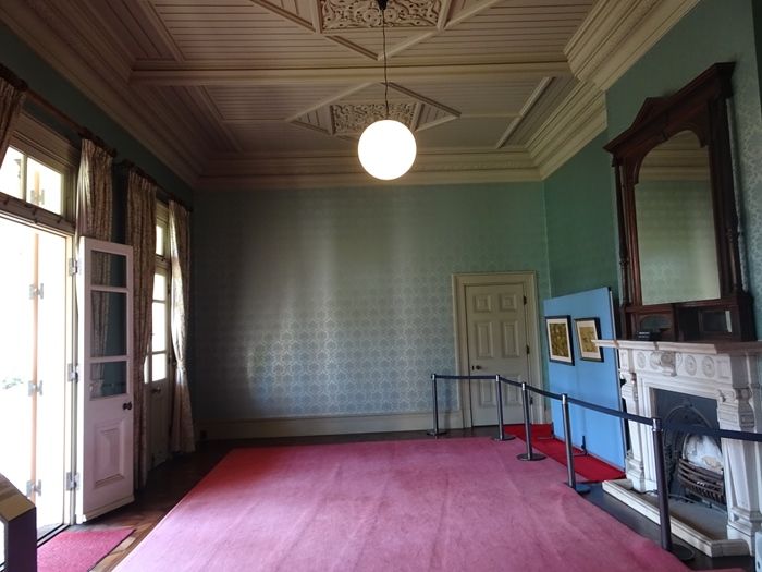 私的な迎賓館の役割を果たした洋館とこの撞球室(ビリヤード場)は、
