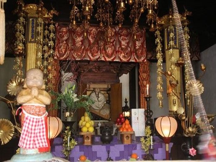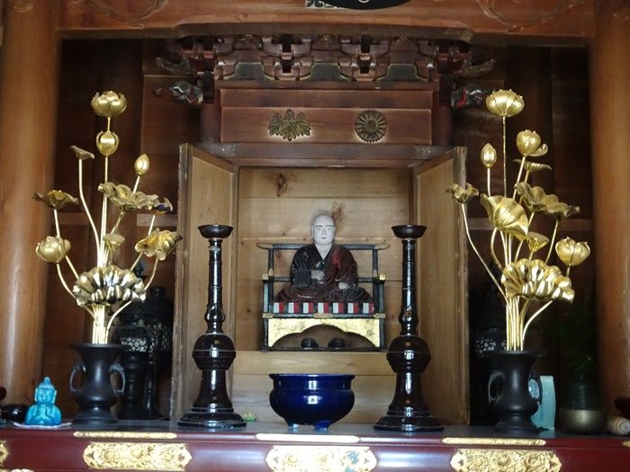 弘法大師の子どもの頃を象った木彫りの「だっこ大師」が左手に。