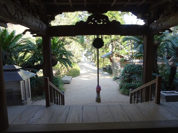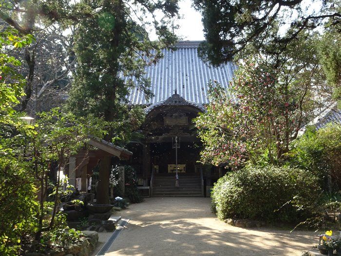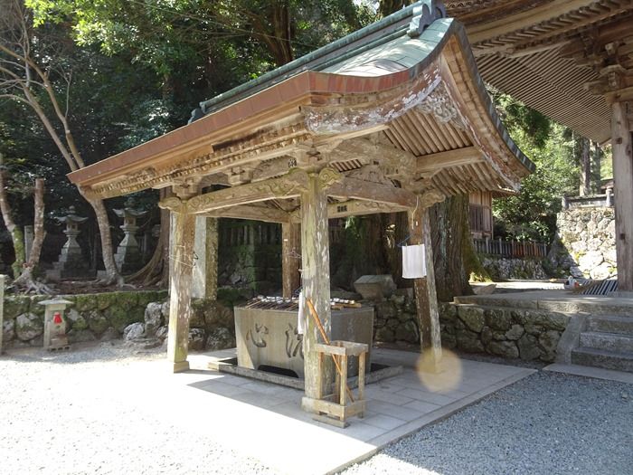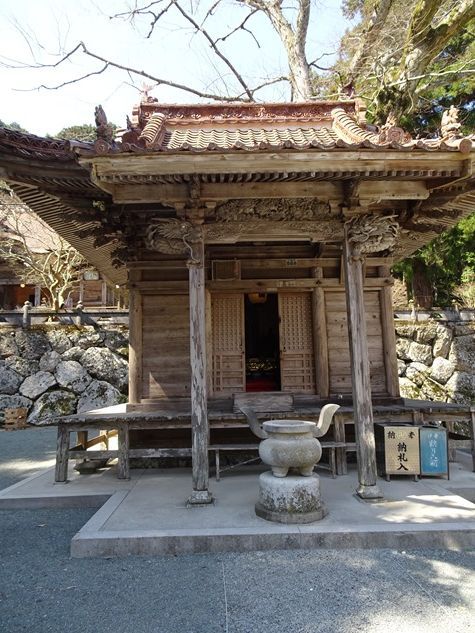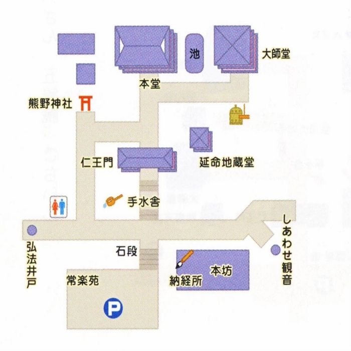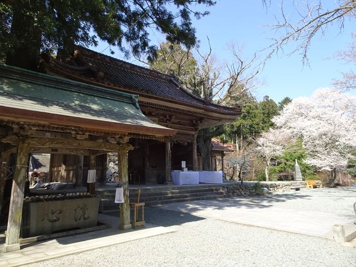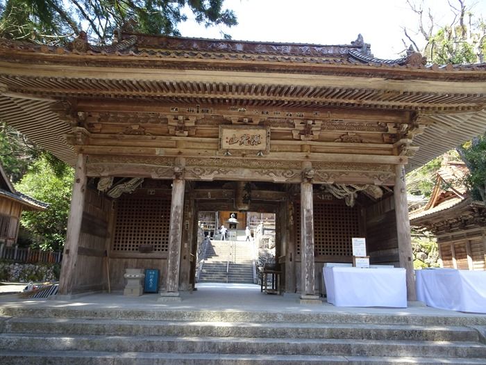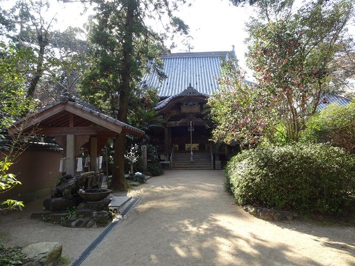 参道から石段を上ると右手に本坊・納経所が、左に手水場があり山門をくぐる。