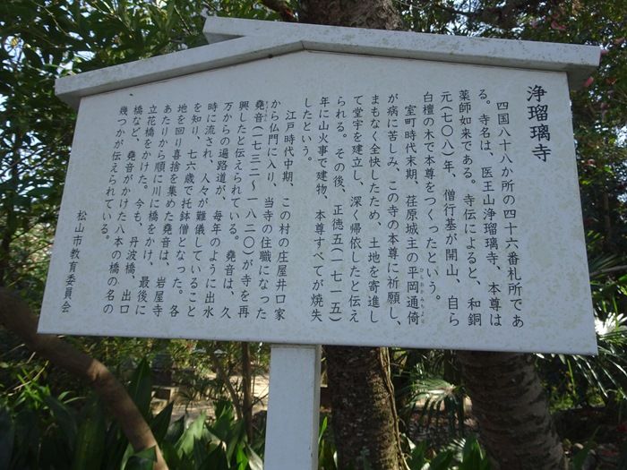 「四国霊場第四十六番 浄瑠璃寺」と書かれた案内板。
