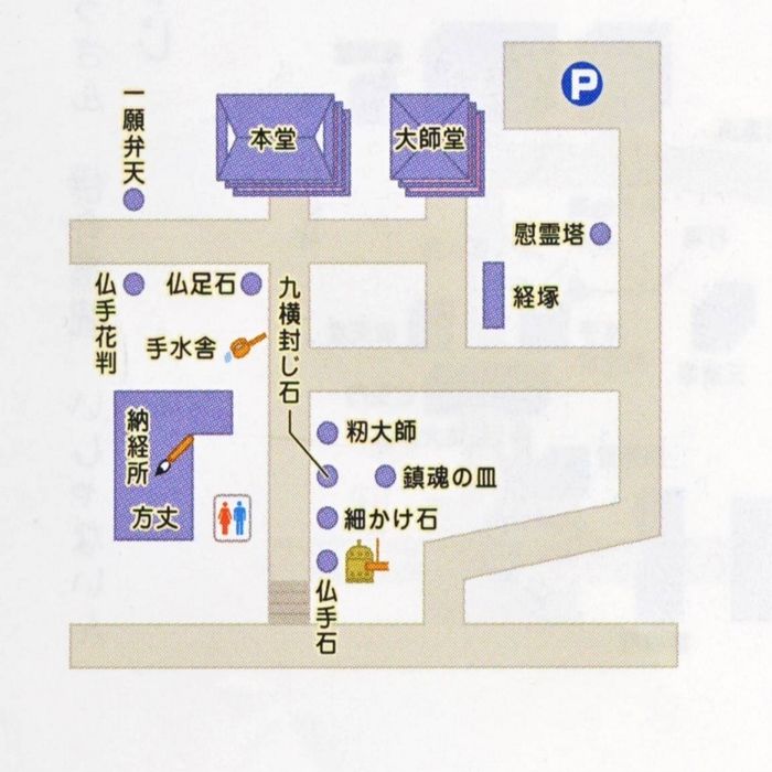 大師堂がある。山門手前を左に行くとトイレがあり、その先奥に弘法井戸がある。