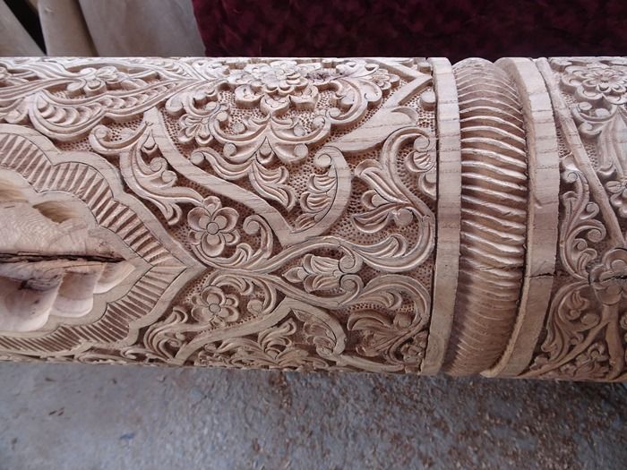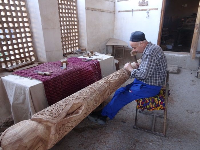 モスクを支える柱の彫刻をするオジサンの姿を暫し見学させてもらった。