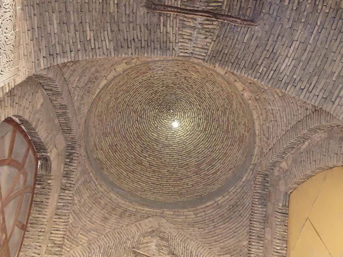 ​​半ドームは三面の大きなムカルナスで構成されている。それぞれに描かれている花瓶のような形。