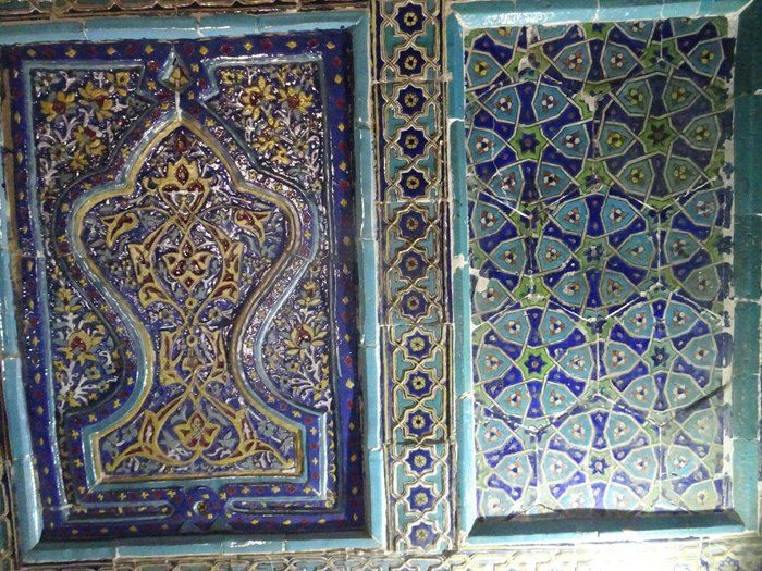 この廟の装飾には、模様の浮き出た壁画のマジョリカが多く使用されている。