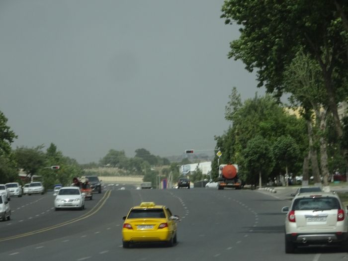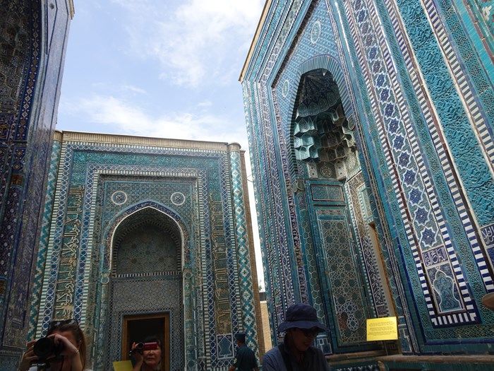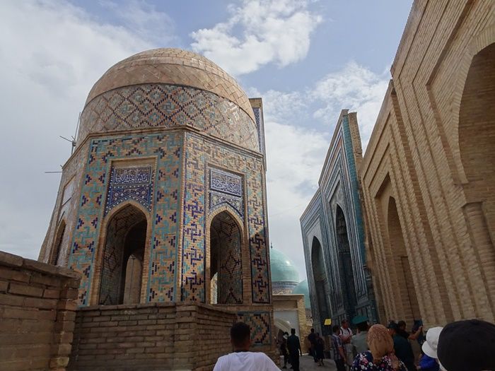 ​Dakhbed Yuli 通りをシャーヒ・ジンダ廟群に向かって進む。