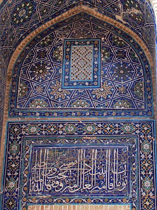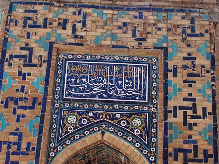 ​​ 1385年建築で、アラビア文字にツタがからまっているような模様。