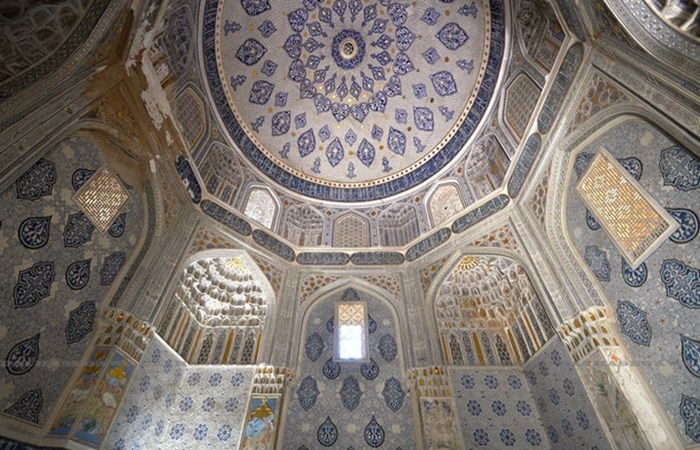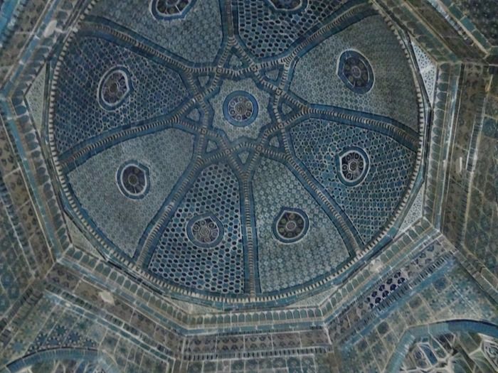 ウスト・アリ・ネセフィ廟内部からドーム天井を見る。