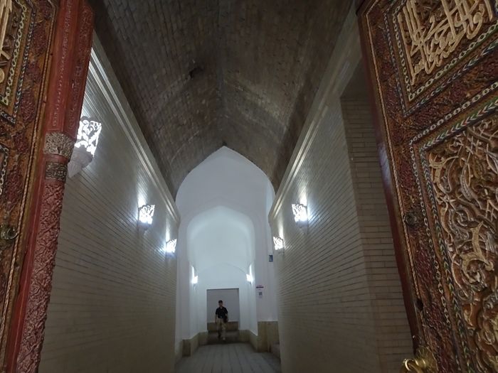 この細長く白い空間を、突き当たりを右に進んでいくとクサム・イブン・アバス廟。