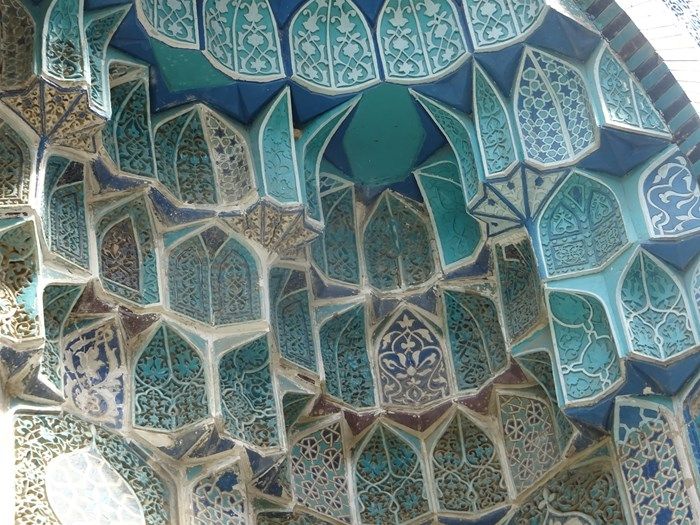 その独特な色は、青緑色や灰緑色、マンガンの色である。ホジャ・アフマド廟は白と青の