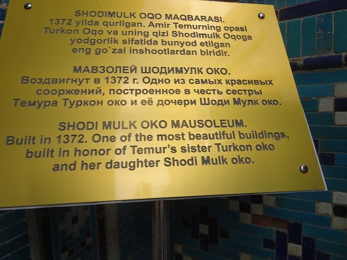 15世紀初め、シャヒ・ジンダ廟群の上部分にはアムール・チムールの最も若い妻の廟が