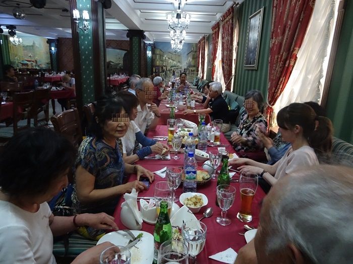 シャーヒ・ジンダ廟群の見学を終え、バスにてこの日の夕食会場へ。