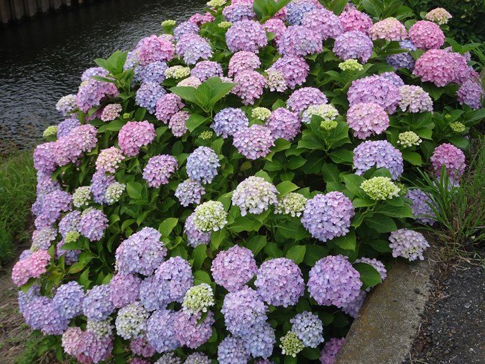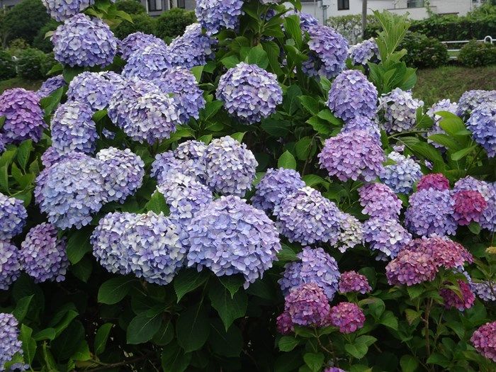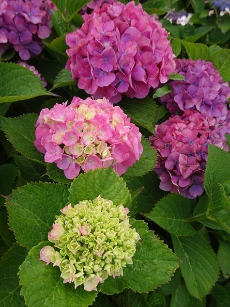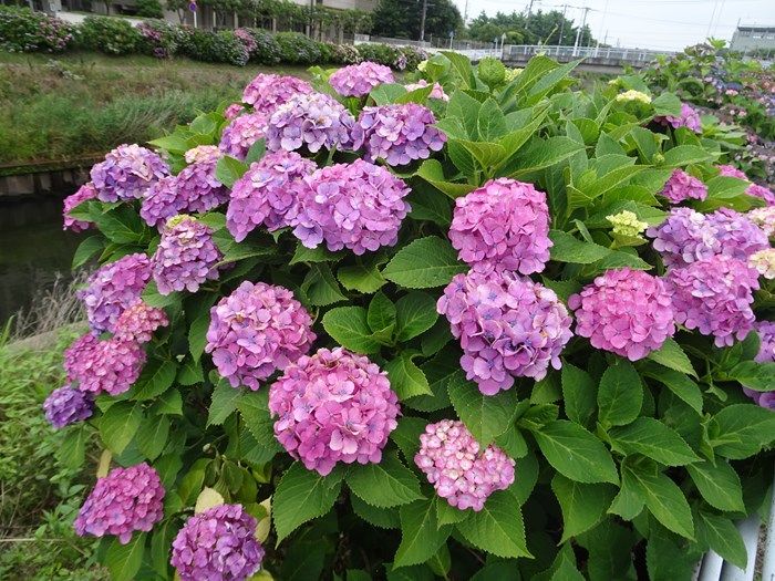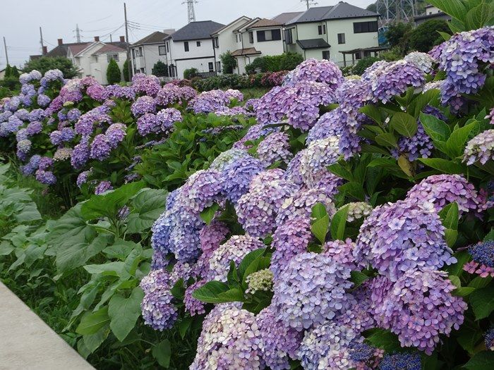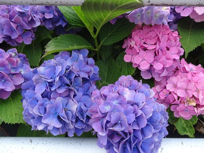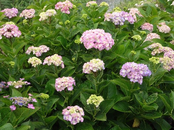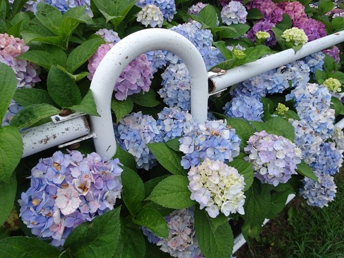 既に花のピークはやや過ぎていましたが、様々な色のアジサイ(紫陽花)が