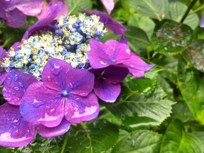 こちらは紫が濃くなりつつあるアジサイ(紫陽花)