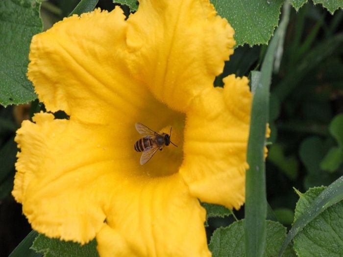 カボチャの花は朝方によく蜜を分泌すると言われているのです。