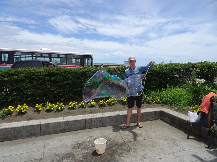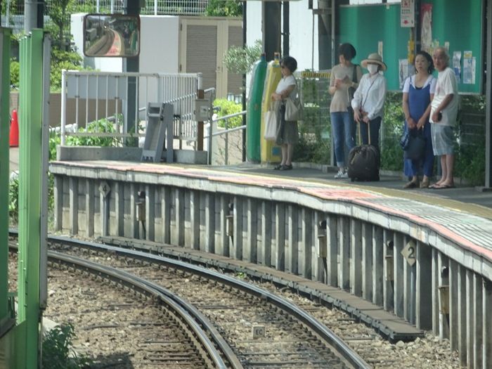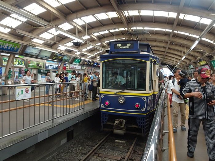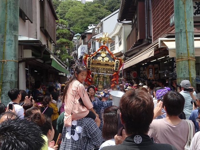 時折通過する江ノ電の車両とスレスレになるが、これもまたこのお祭りの見所。