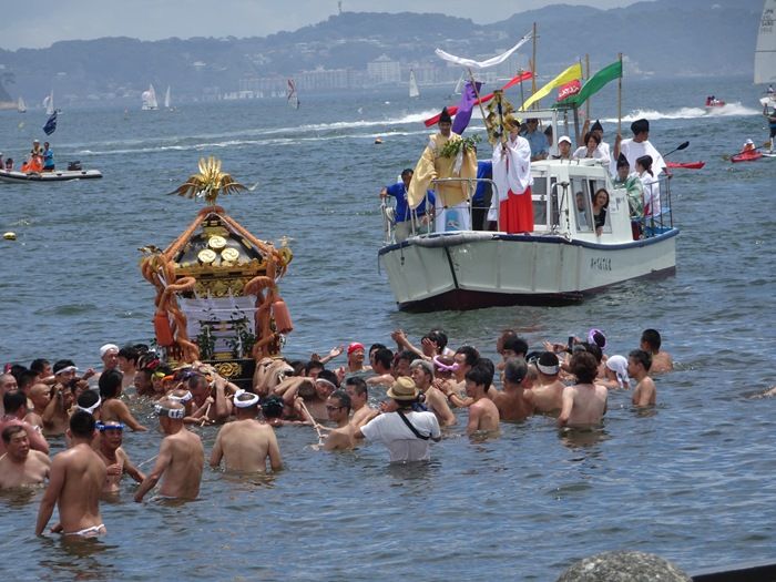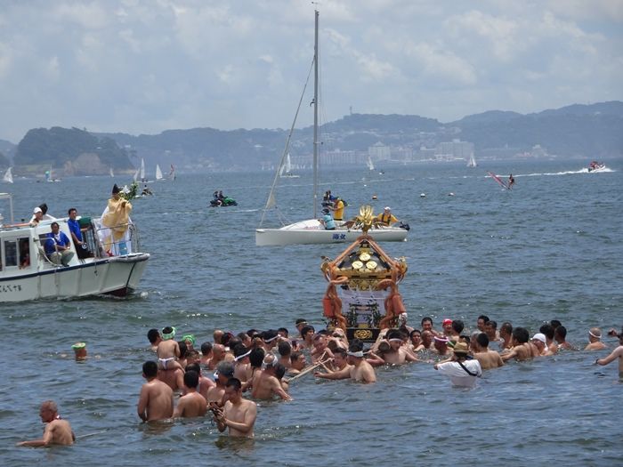 江の島における八坂神社のお祭りは、夏の疫病や災いを祓いのける意義と、大海士の伝承が