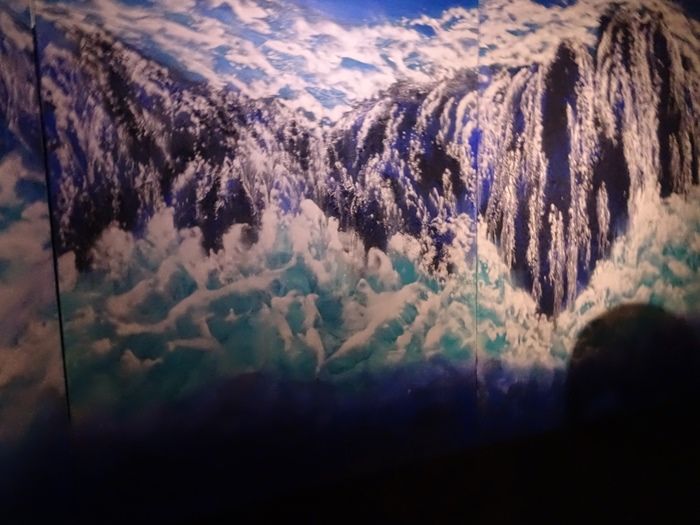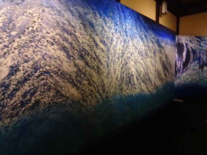 青と白が飛び散り絡み合う絵。この色彩から真っ先に思い浮かぶのは、大海原や