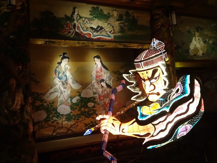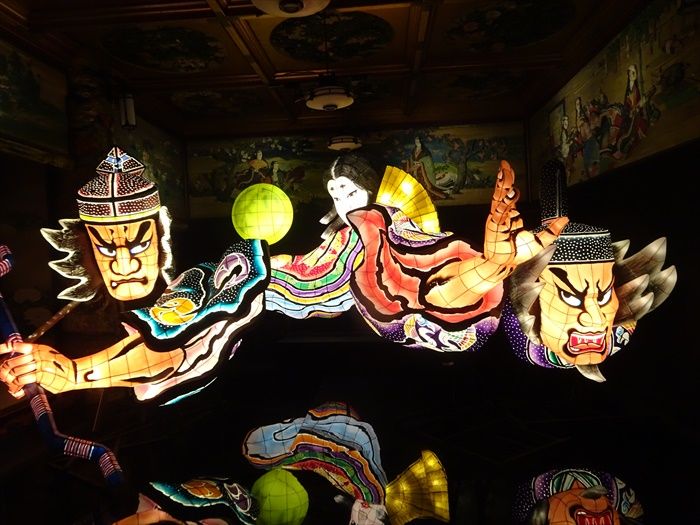ねぶた師・手塚茂樹さんの「帝」、北村春一さんの「かぐや姫」、立田龍宝さんによる「武者」。