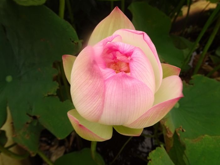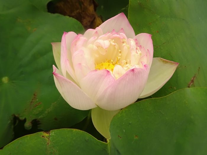 ハスの葉は、まわりの空気の温度よりも暖められると、その葉内の細胞間隙部分が加圧されます。
