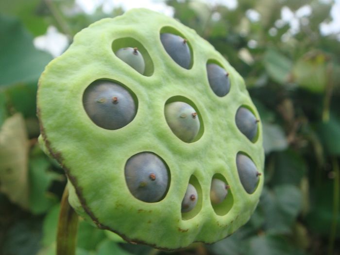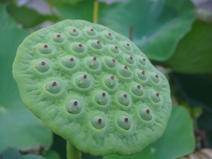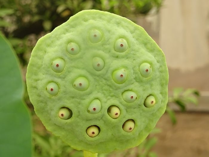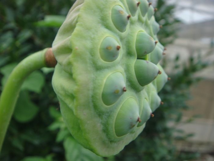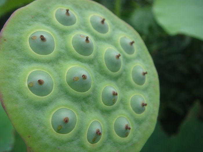 蓮の実が生長して表面に乳房の如く押し出て来ています。