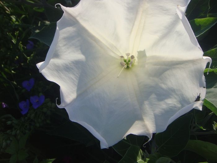 我が家の近くの畑道沿いに、トランペットフラワーの如き大きいラッパ型の白花が