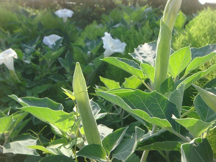 チョウセンアサガオは熱帯アメリカ原産のナス科の一年草で、日本には1879年に渡来したと