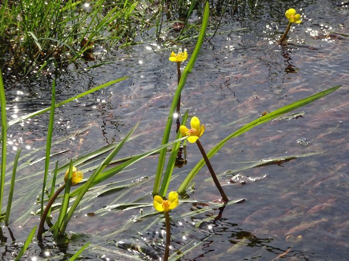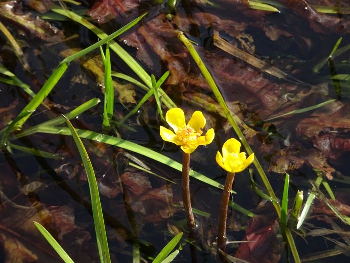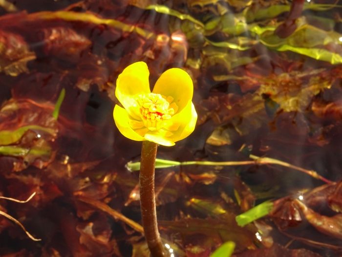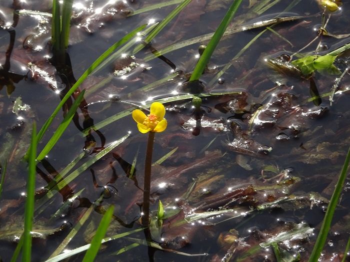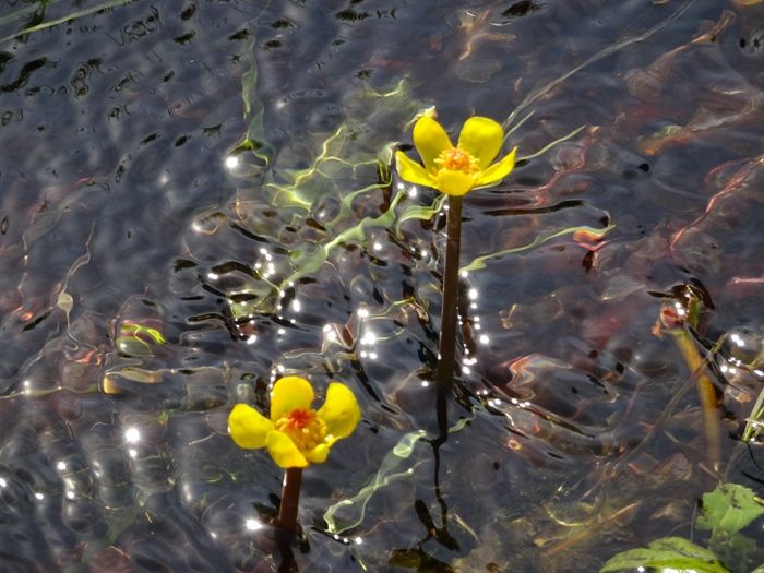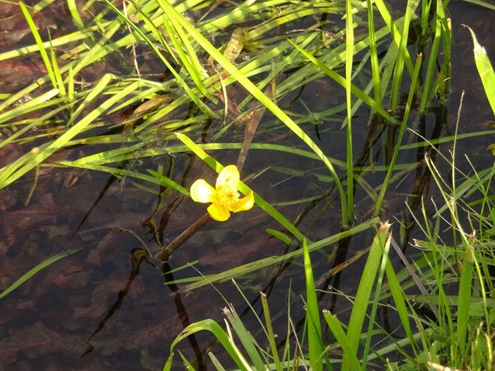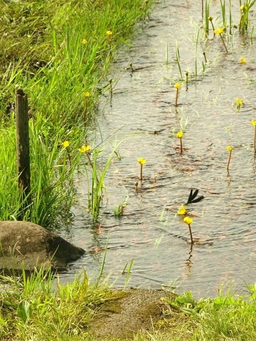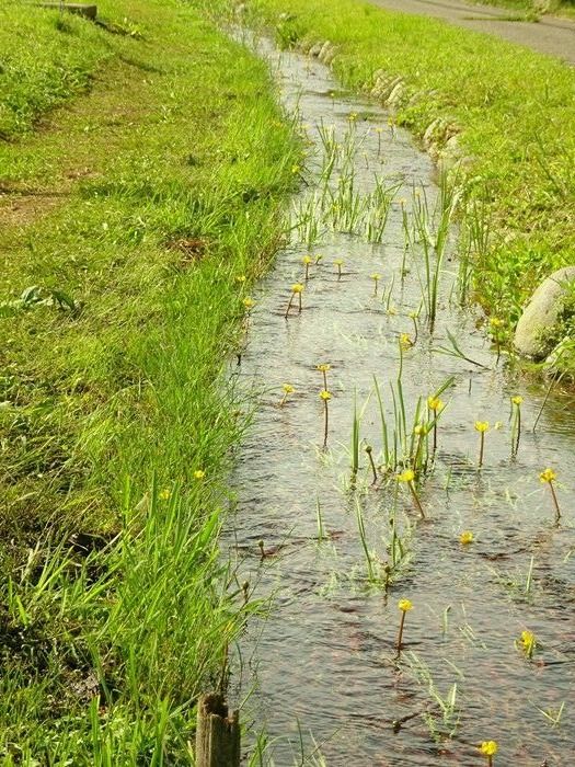この水路には、国内希少野生動植物種に指定された本県固有種のシモツケコウホネが生育して