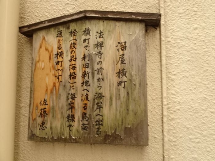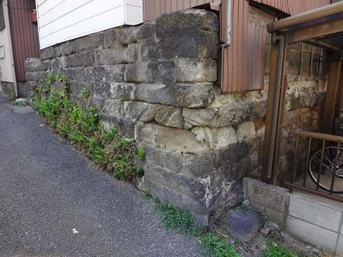 横町は全て坂になっていた。昔の海岸線には護岸のための石垣が築かれていた。
