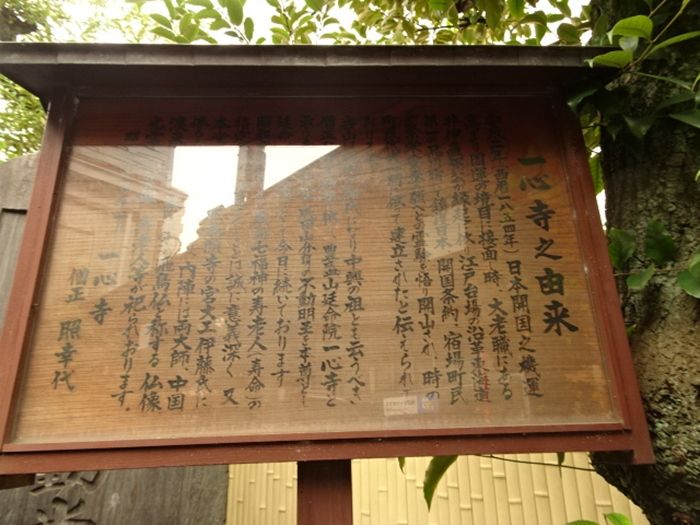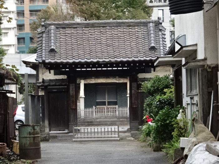 成田山品川一心寺講事務所の表札が掛る山門を入るとすぐ本堂という小さな寺で、