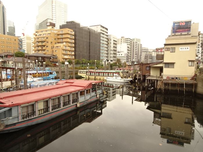 現在では、つり船や屋形船が舳先(へさき)を並べている。早朝や夕暮れ時は独特の風情があり、