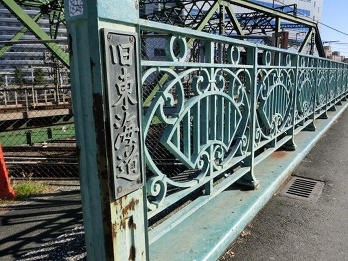 八ツ山橋の欄干には「旧東海道」の文字が。