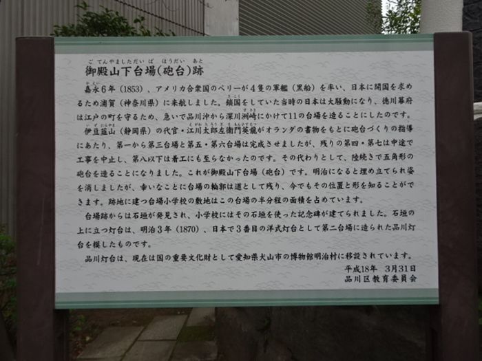 御殿山下砲台は、江戸防衛のため幕末に築かれた「品川台場」のひとつ。