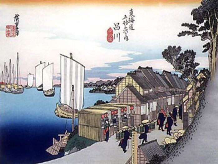 江戸時代の東海道は、品川宿に入ると海にちかくなり、宿場通りから海岸の方へ行く