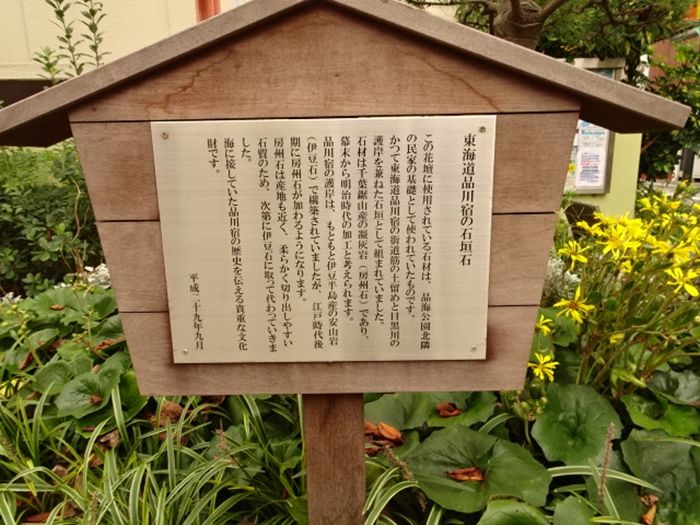 この花壇に使用されている石材は、品海公園北隣の民家の基礎として使われていた物であると。