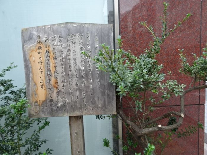 その法禅寺の前から海岸に通じる横町を「溜屋横町」と呼び、現在の品海橋に通じている。