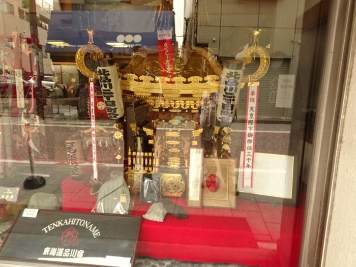 北品川二丁目の『尾張屋呉服店』のショーウィンドウには神輿が。