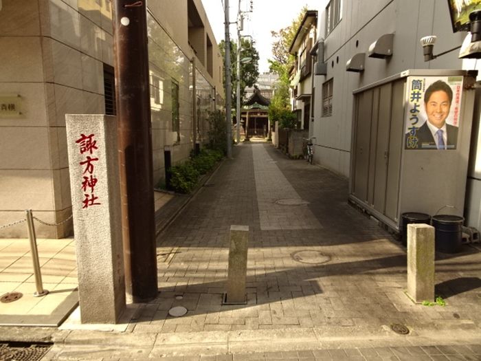 右手に「諏方神社(すわじんじゃ)」と刻まれた石柱が。