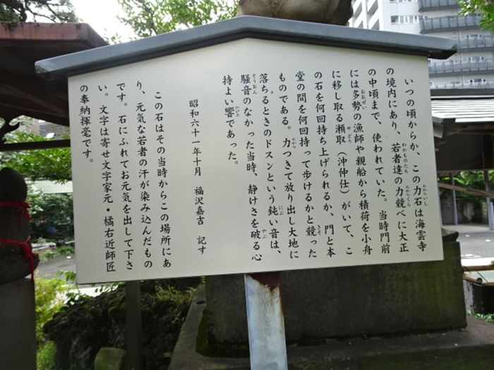 「いつの頃からか、この力石は海雲寺の境内にあり、若者達の力競べ(ちからくらべ)に