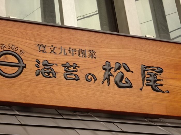 寛文9(1669)年創業の海苔問屋・「海苔の松屋」が交差点の角に。