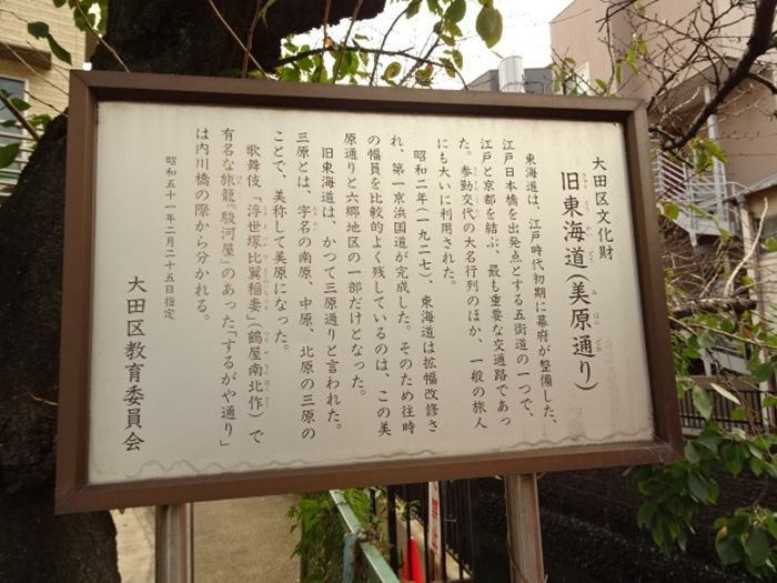 『旧東海道 大田区内の旧東海道のうち南・中・北原をまとめ三原通りと呼ぶ。』