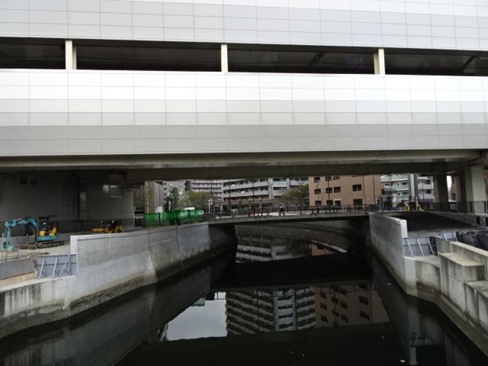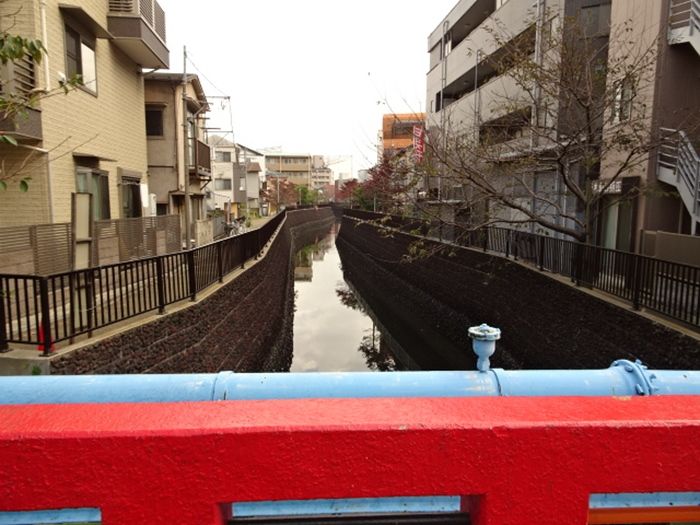大森西四丁目のバス停近くでいっしょになっていました。このあたりの内川は水の量が多く、