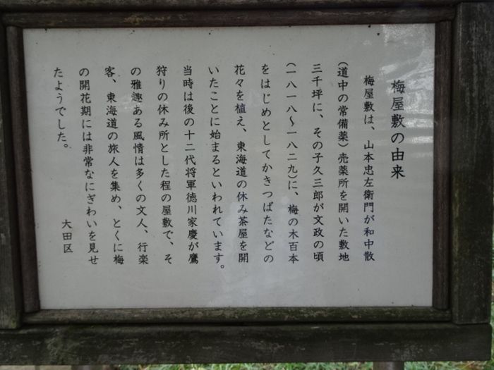 そんな由緒もあり、梅屋敷は昭和8年に史蹟に指定され、昭和28年、大田区に譲与された。