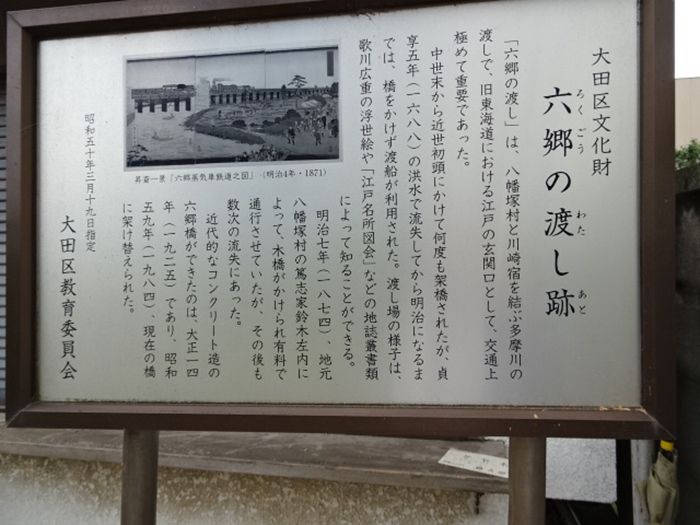 『六郷の渡し跡』の説明板。