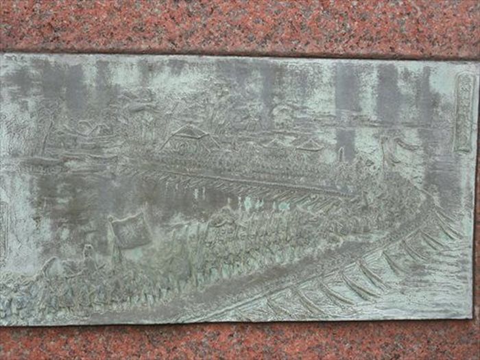 船橋を渡ったことを記念する碑が立っていた。