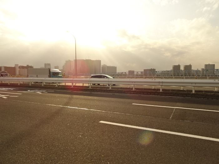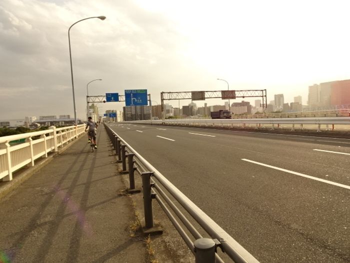 六郷橋北詰の交差点を過ぎると、前方に第1京浜・六郷橋への導入路が見えて来た。