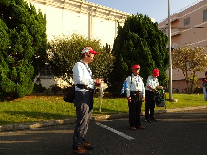 1号ドック横で説明を聞くこの日のツアー参加者。